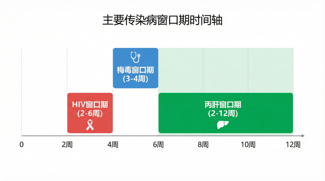 - 丙肝:窗口期较长,通常为感染后2-6个月,建议在3个月及6个月时分别检测。